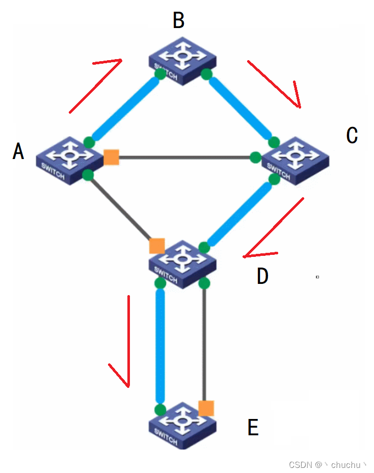 根据STP会指定一些链路阻塞,形成一个数据传输的通道: