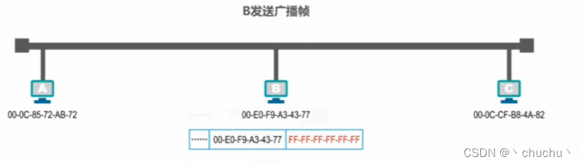 广播就是所有人都要接受,目的地址会改为全F,当主机接受到全F,就知道是广播帧