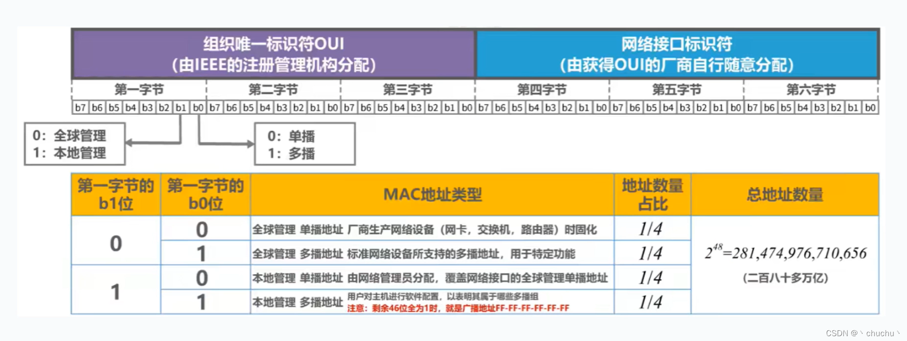 第一个字节的第一个比特位就表示它是单播地址还是多播地址(一般奇数就是多播)