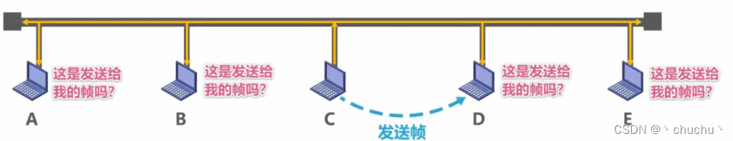 每台主机会根据自己的MAC地址与帧上的MAC地址匹配,不符合就丢弃