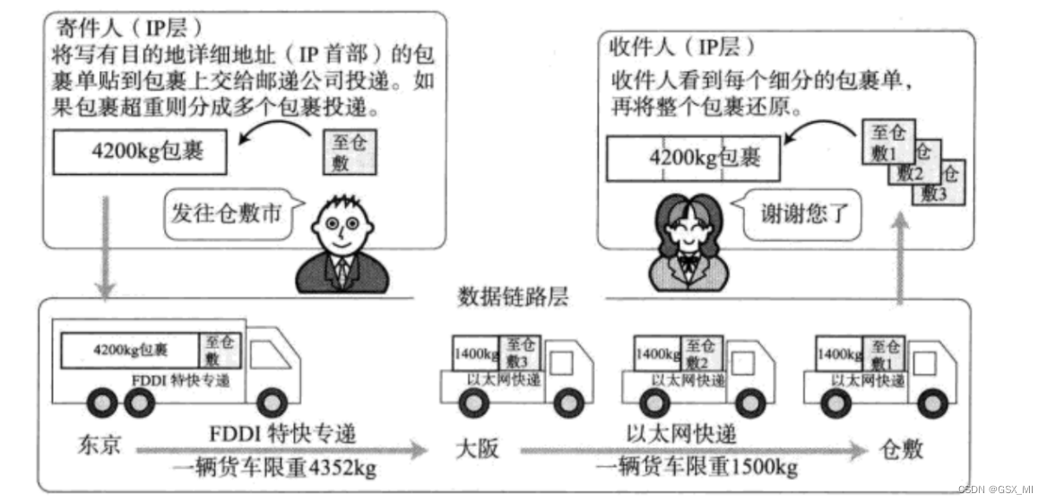 (1)因为数据链路层规定了最大传输单元MTU,所以如果IP层一次要发送的数据量超过了MTU,此时IP层就需要先对该数据进行分片,然后才能将分片后的数据向下交付。