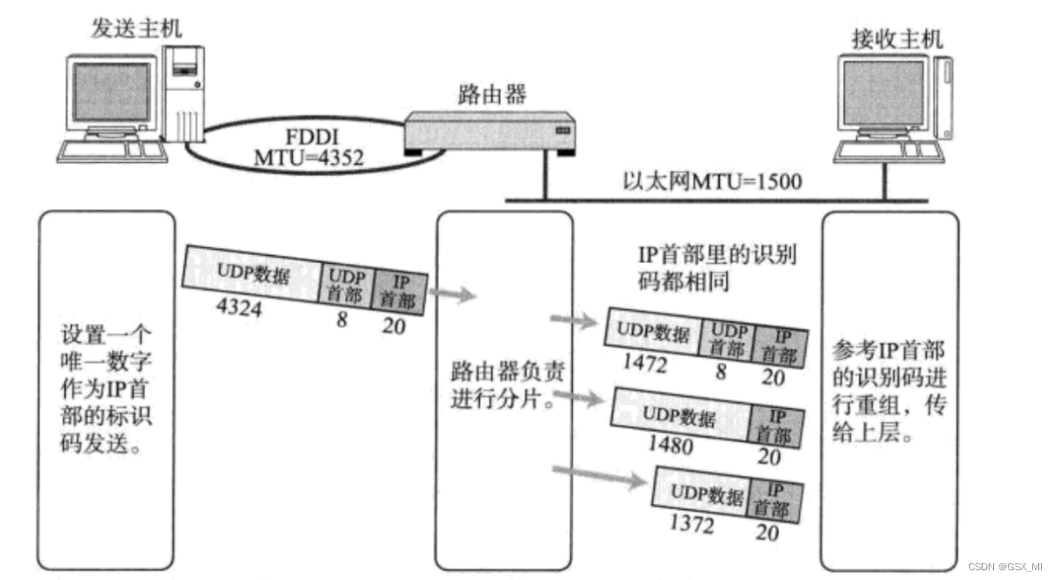 - 以太网对应MTU的值一般是1500字节,不同的网络类型有不同的MTU,如果一次要发送的数据超过了MTU,则需要在IP层对数据进行分片(fragmentation)。