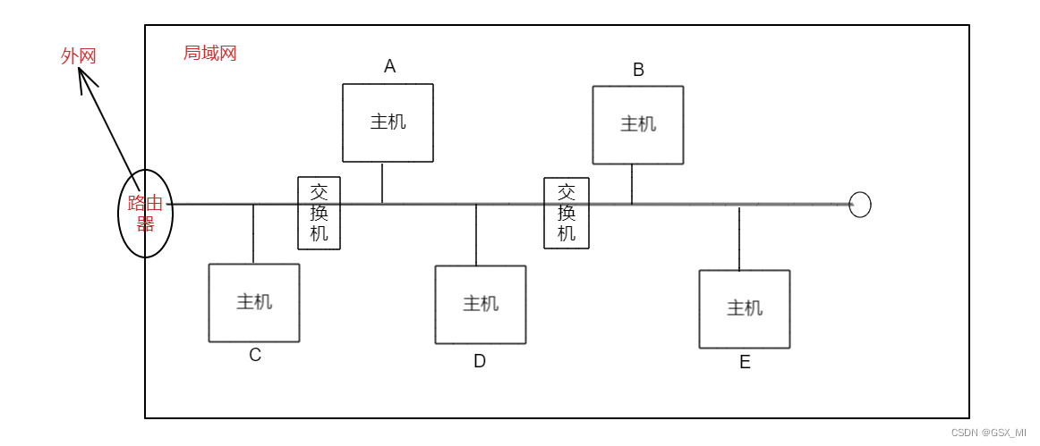 - 当局域网中的主机A想要发送数据给主机B时,其实局域网当中的每一台主机都能收到主机A发出去的数据,只不过最终只有主机B会将主机A发来的数据向上进行交付。