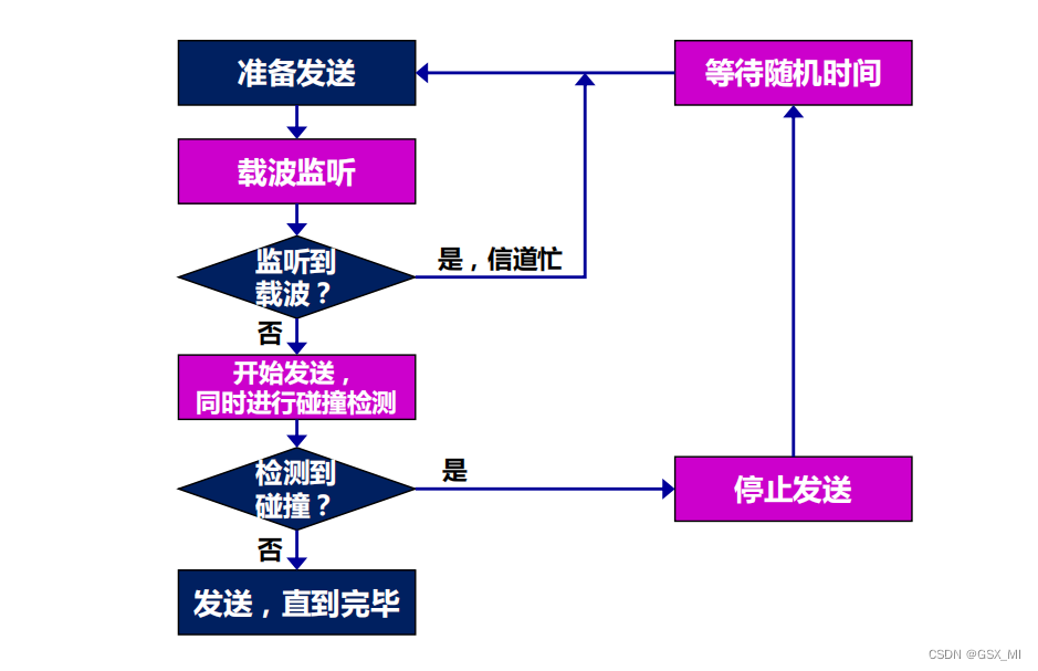 - 也就是说,以太网中主机发送的数据产生碰撞后该主机会执行碰撞避免算法,所以我们说以太网是基于碰撞区和碰撞检测的局域网通信标准。