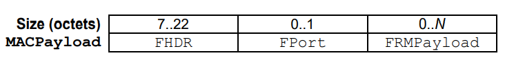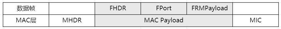 - MAC数据段由帧头FHDR,帧端口FPort,帧载荷FRMPayload3个子段组成