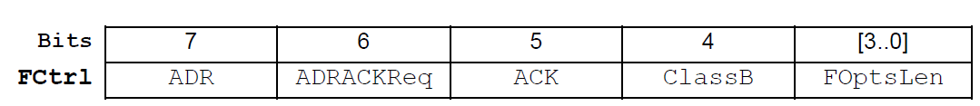 - ClassB - 仅用于上行链路帧,该位置1表示节点通知服务端,自己已经使能Class B设备了,可以开始接收下行ping,具体见后续Class B设备分析