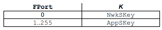- 加密密钥依据FPort的值而定,NwkSKey和AppSKey会在入网过程中生成