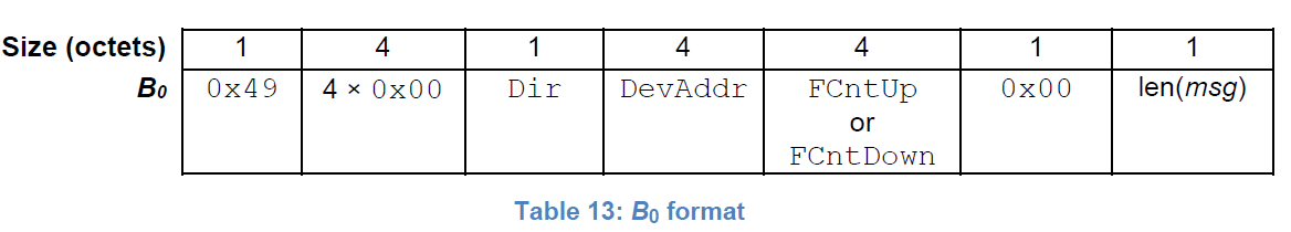 - 额外加入数据B0[16],其中有DevAddr,Dir(0-Up;1-Down),Fcnt,len(msg)