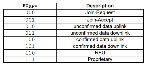- 总共分为3类,其中Join-Request和Join-Accept比较特殊,仅用于空中入网过程