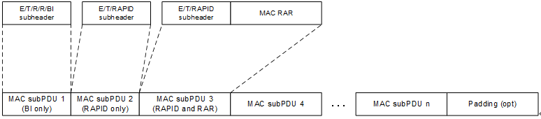 | E(Exension)域 | 指示当前MAC subPDU是否是最后一个 |