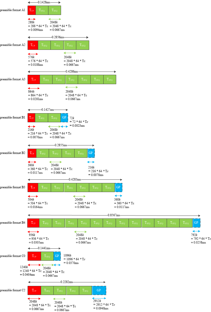 图21.2 X长序列preamble各format所占时域连续时间示意图