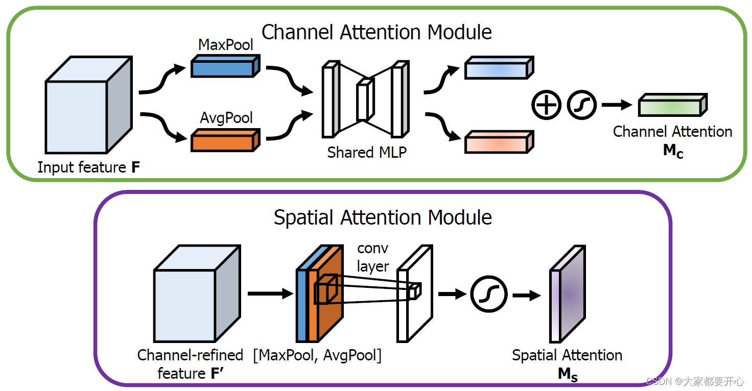 空间注意力:将输入的featuremap,做一个基于channel的global max pooling 和global average pooling。
