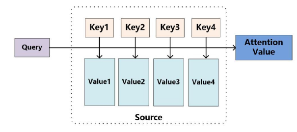 注意力的思想,类似于寻址。给定 Query,去 Source 中计算 Query和不同 Key 的相关性,即计算 Source 中不同 Value 值的权重系数;Value 的加权平均结果可以作为注意力值。