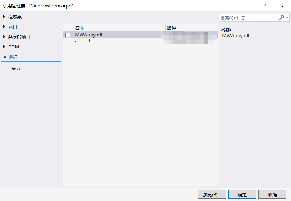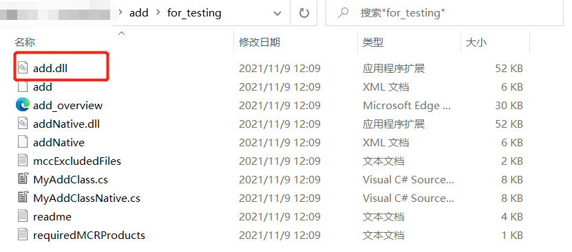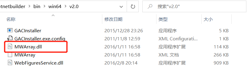 在生成的add文件夹的for_testing子文件夹中有个add.dll文件,以及在Matlab安装位置D:SoftwareMatlab2016toolboxdotnetbuilderbinwin64v2.0中有个MWArray.dll文件,后续需要用到。