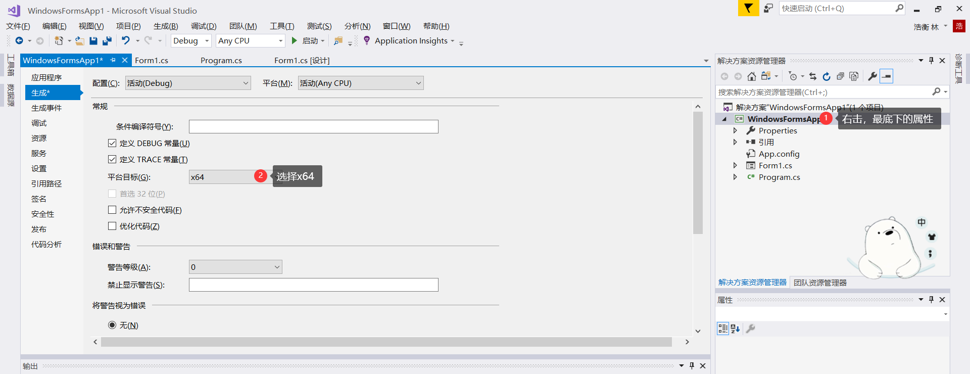 遇到“MathWorks.MATLAB.HET.Arrays.MWArray”的类型初始值设定项引发异常的问题,查阅资料后大致了解是版本差异的原因,即我装的Matlab这边生成的dll和MWArray.dll是x64文件(因为我装的是64位matlab),而我的C#生成的时候选择的平台目标默认首选32位(即x86),导致不匹配。