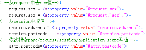 - <s:property value="OGNL表达式"/> 取值,注意返回结果类型为forward