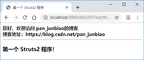 (2)点击主页中的“请求 Struts”超链接,请求将交给Action对象first进行处理,在处理成功后,返回到first.jsp页面。
