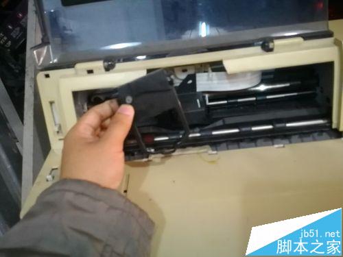 3、把旧的色带拿出来,可以扔了。