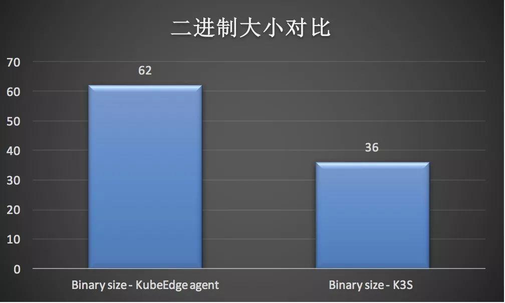 KubeEdge agent 二进制大小为 62MB,K3S 二进制大小为 36MB。