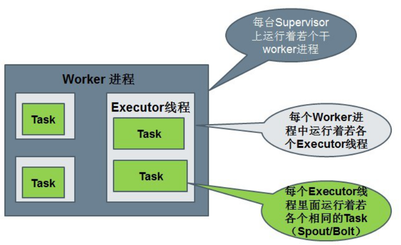 每一个spout和bolt会被当作很多task在整个集群里执行