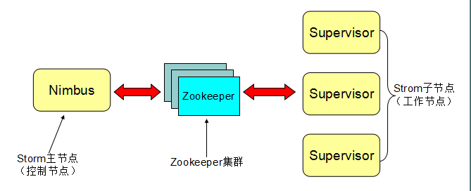1:在Storm的集群里面有两种节点:控制节点和工作节点。控制节点上面运行一个叫Nimbus进程,Nimbus负责在集群里面分发代码,分配计算任务,并且监控状态。