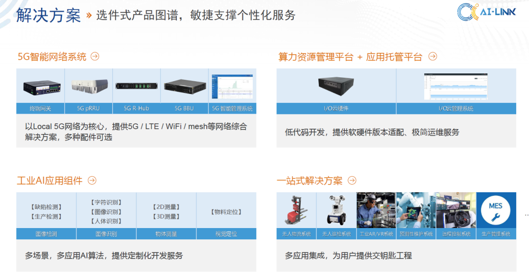 这是一个基础系统,在这个基础系统上还会叠加一部分工业AI应用。最终整个形态完成标准化构建,但里面软件的构成是个性化组合的,最终以一体式系统一站式部署的方式拉到工业客户现场进行交付。