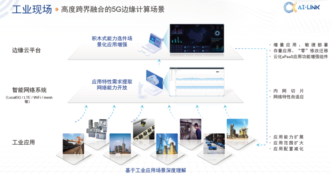 前面提到网络是基础,平台是核心。那么平台是什么?从艾灵网络的角度来看,在工业现场的场景下,这个平台指的就是边缘计算平台。而且这个边缘计算平台很大程度上不同于现在从互联网业务角度给大家呈现的边缘计算平台,它会有非常强的工业属性。这与To C领域的5G与边缘计算的结合有很大的不同。