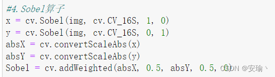 在python中使用Sobel()函数实现,其函数用法如下: