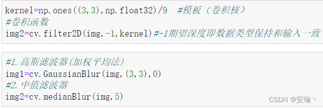 除了以上4种锐化滤波算子,在这里还简单提一下平滑滤波器。主要是高斯滤波器和中值滤波器。代码如下所示: