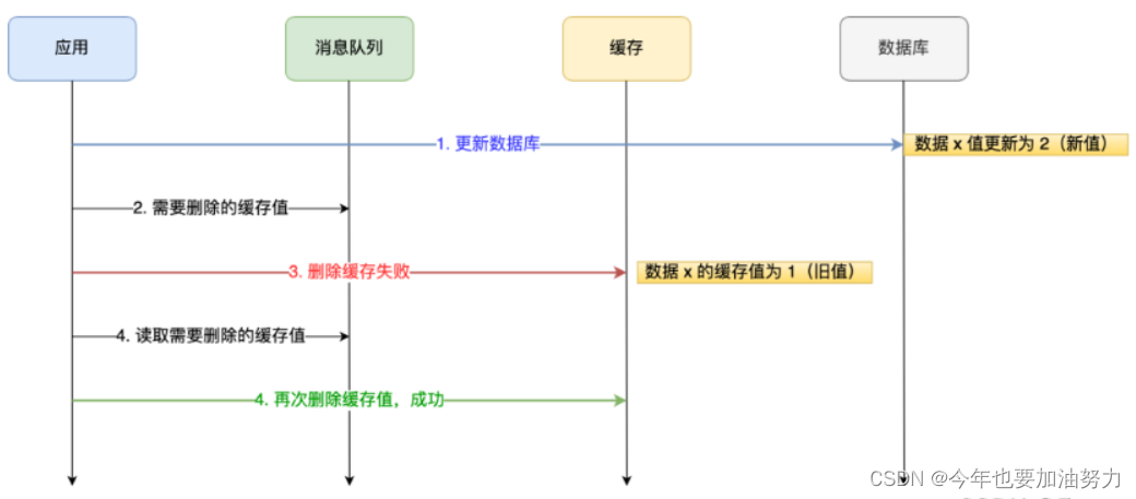 我们可以引入消息队列,将第二个操作(删除缓存)要操作的数据加入到消息队列,由消费者来操作数据。