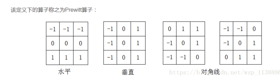 最简单的求图像导数的算子是 Prewitt算子 :
