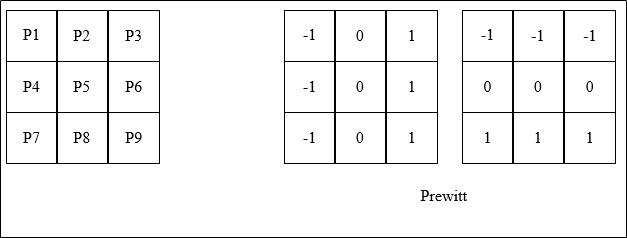 Prewitt算子是一种图像边缘检测的微分算子,其原理是利用特定区域内像素灰度值产生的差分实现边缘检测。由于Prewitt算子采用 3*3 模板对区域内的像素值进行计算,而Robert算子的模板为 2*2,故Prewitt算子的边缘检测结果在水平方向和垂直方向均比Robert算子更加明显。Prewitt算子适合用来识别噪声较多、灰度渐变的图像,其计算公式如下所示(以P5作为卷积核心):