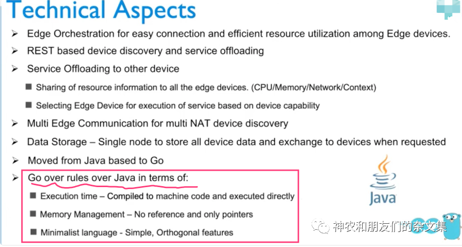简单来说,用一句话来表示边缘设备上的系统开发的话,就是我们需要在边缘侧开发服务类程序。显然,java不太合适。java一个是资源消耗大,另外一个是中间件太多。这是我最初的想法,后来发现某些老外也是这么想的,比如下图的某个项目里的说法: