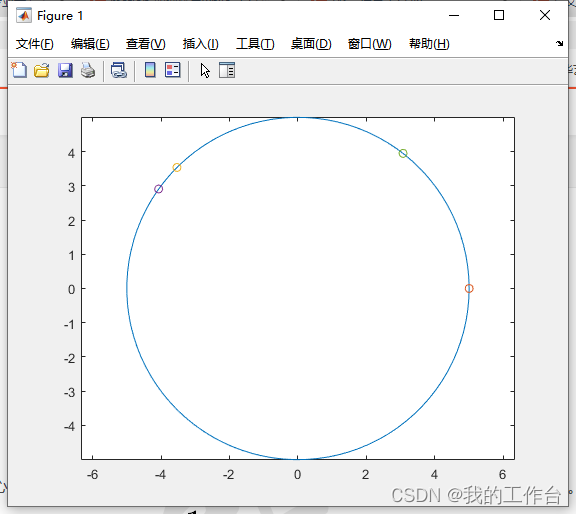 plot(car1(1,k),car1(2,k),'o',car2(1,k),car2(2,k),'o',car3(1,k),car3(2,k),'o',car4(1,k),car4(2,k),'o');