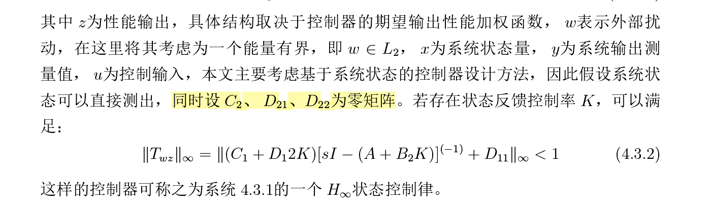H∞控制理论的基本思想为设计一个控制器 K,使得从扰动 w到系统性能输出 z传递函数 Twz的 H∞范数最小