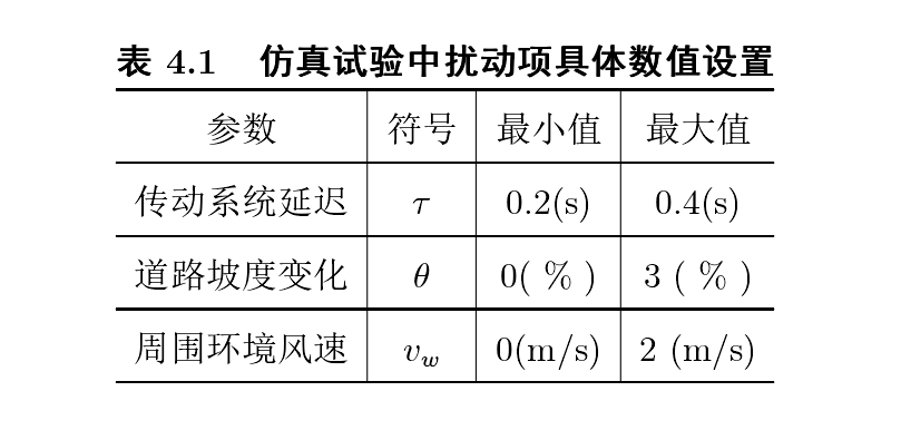 但目前在控制器设计中仍存在一些不足。首先无论是从安全的角度还是从节能的角度进行考虑,保证队列中车辆间的动力学一致性至关重要,因此有必要在控制器设计过程中考虑消除编队行驶过程中前后车动态的不一致;在车辆编队行驶过程中,难免会受到模型参数不确定、外部环境干扰的影响,因此有必要在控制器设计过程中考虑如何最小化实际系统中干扰量的影响,同时保证队列行驶的跟踪性能;当队列中车辆数目较多时,跟随车不仅要保证对前车的跟踪性能,同时也要注意到和后车之间的相对关系,因此在选取跟随车的参考输入时,要兼顾对队列整体的影响,保证队列整体的稳定性。本文的内容将围绕上述存在的问题展开研究,随后章节的内容如下: