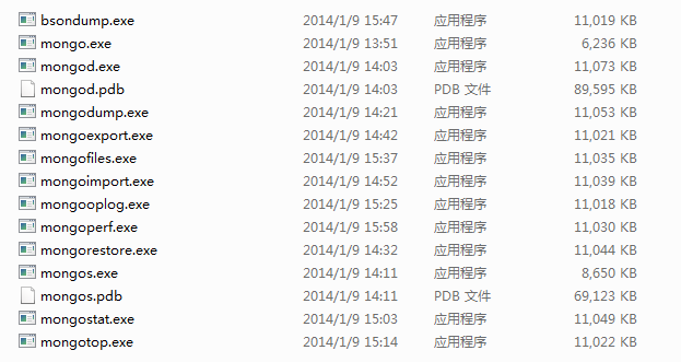 2,其中有两个最重要的文件:”Mongod.exe“和”Mongo.exe“ 。