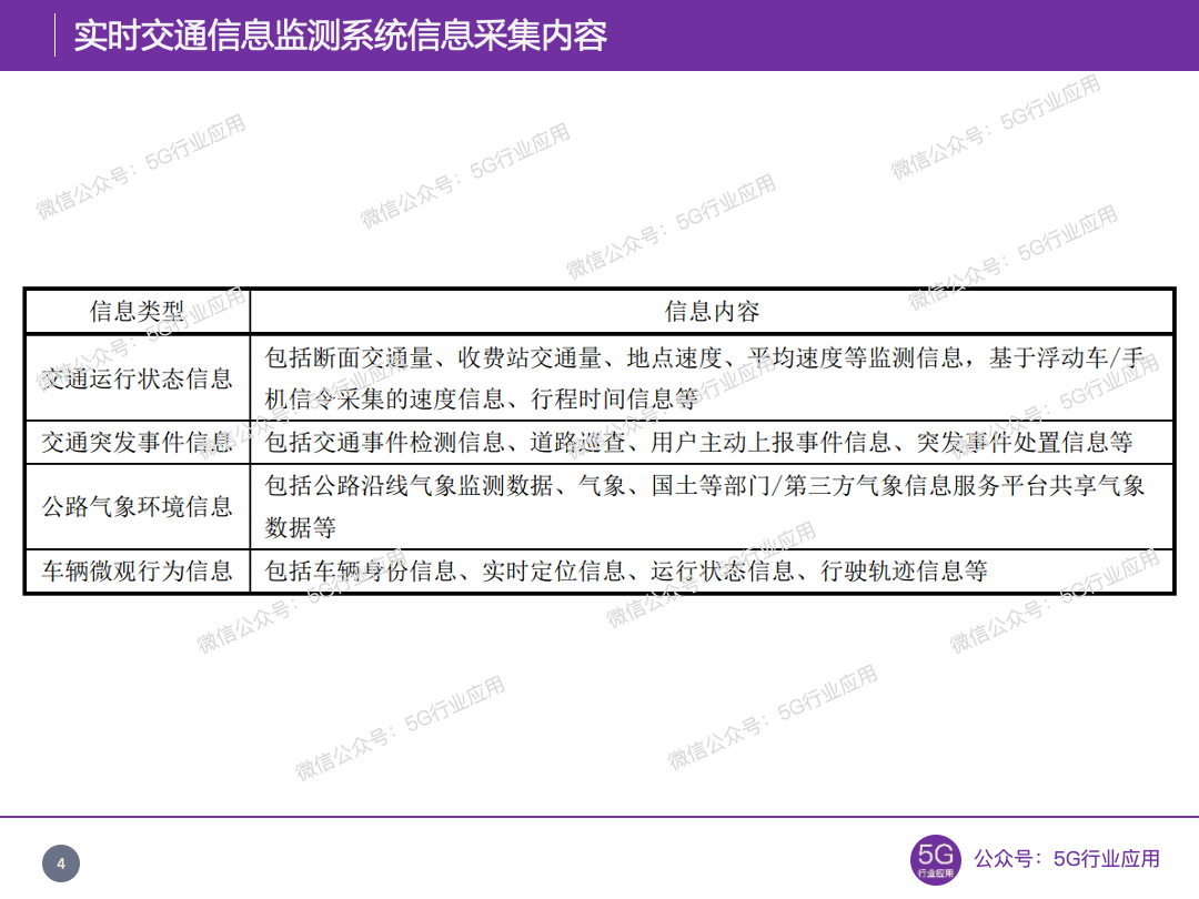 实时交通信息监测系统应采用路侧设备采集信息、辅以移动终端/车载终端采集信息及一路各方、气象等部门共享信息等多源数据融合的技术路径,实现高速公路实时状况信息获取,为伴随式信息服务、实时交通管理服务等应用提供支撑。高速公路路侧交通信息监测设备包括但不限于:交通流检测设备、车牌识别检测设备、交通事件检测设备、气象监测设备、单兵设备/视频巡逻车/无人机等移动信息采集设备、RSU设备。