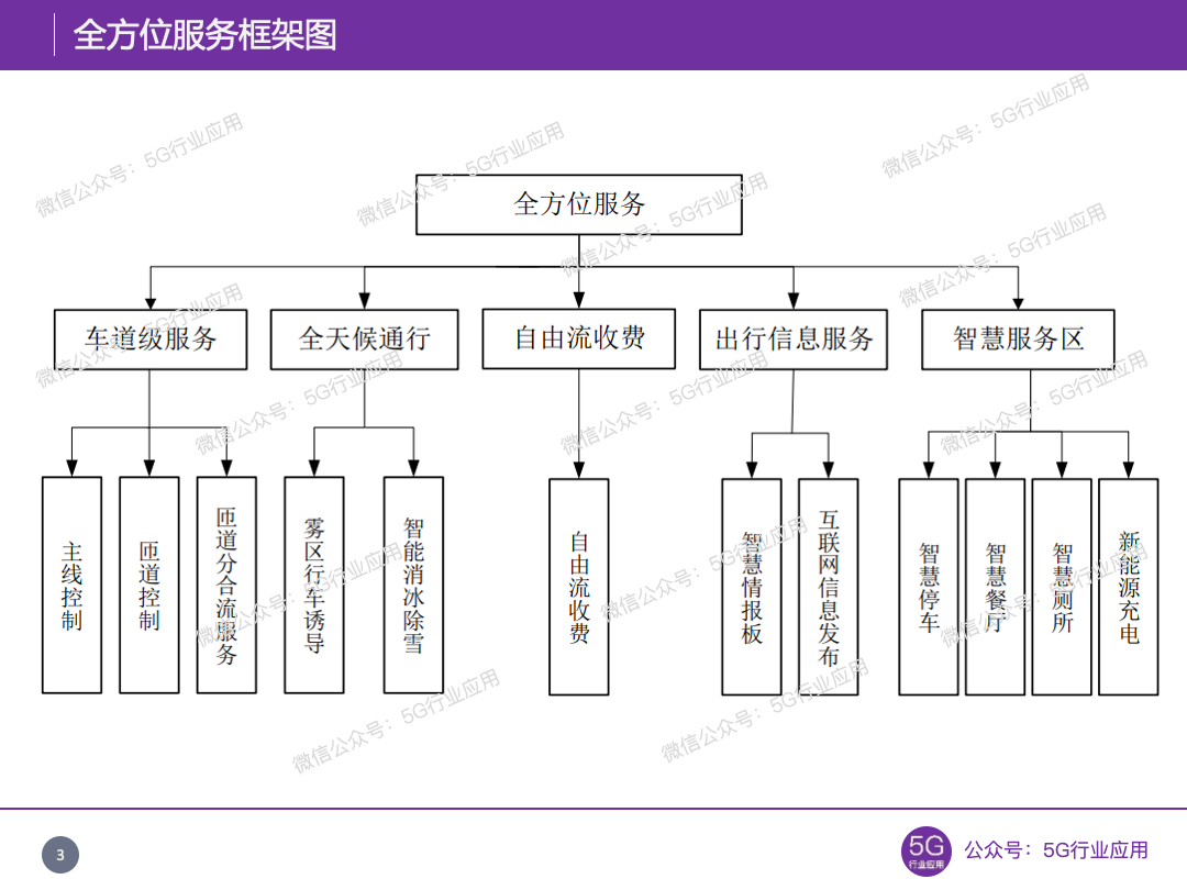 全方位服务包含车道级服务、全天候通行、自由流收费、在途信息发布和智慧服务区,主要面向驾乘人员,实现出行即服务(Maas)。