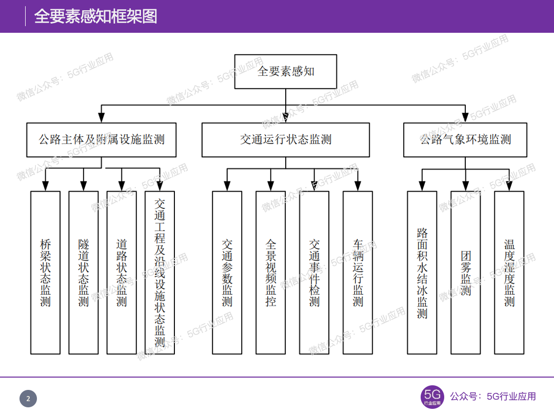 全要素感知包含公路主体及附属设施监测、交通运行状态监测和公路气象环境监测,主要是融合应用多种监测设备实现人、车、路、环境的状态感知,为全方位服务、全业务管理、车路协同与自动驾驶提供数据支撑。