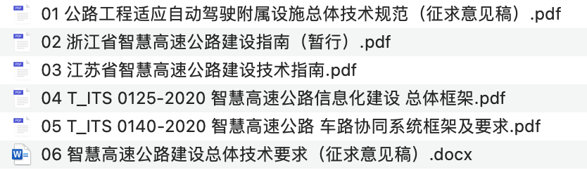 2020年4月,交通运输部公路科学研究院发布《公路工程适应自动驾驶附属设施总体技术规范(征求意见稿)》。2020年3月,浙江省交通运输厅发布《智慧高速公路建设指南(暂行)》。2020年11月,江苏省交通运输厅发布《江苏省智慧高速公路建设技术指南》。