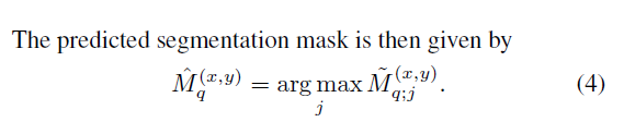采用FCN-32s结构,对query image 进行特征提取,将其与 conditioning branch所得参数进行点乘得到分割结果。