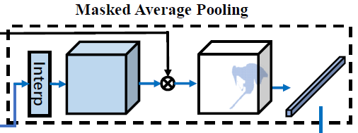 提出使用masked average pooling 来提取 support set 的中目标的表征向量;