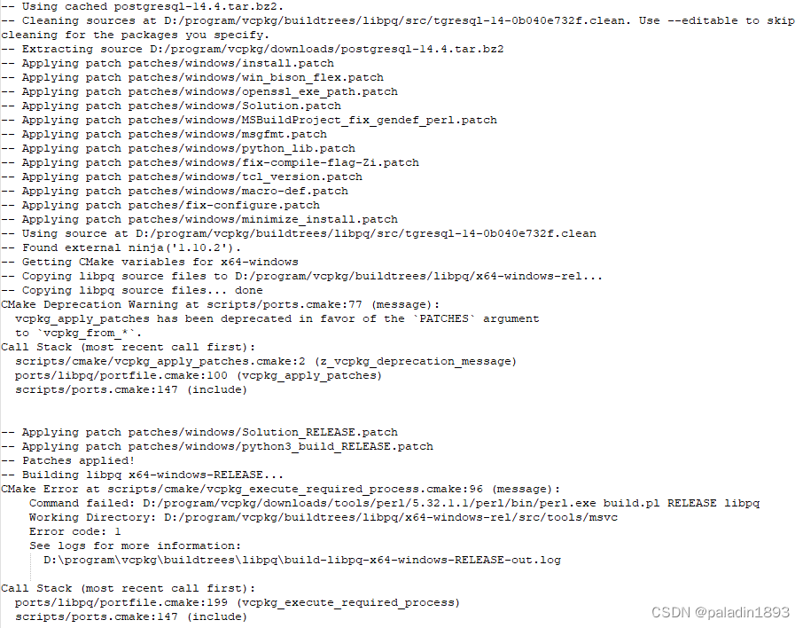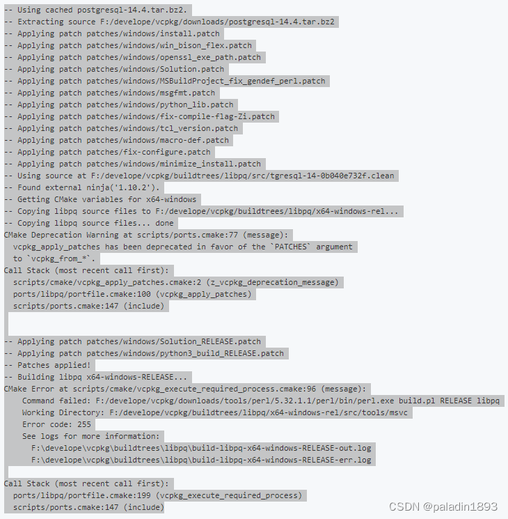 这个错找了半天,初期以为是vckpg配置脚本有误,按vckpg的提示去看github上的issues,尝试安装English语言包,再执行安装,完美解决。