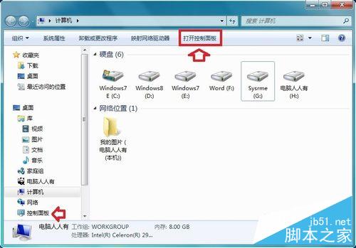 1、使用Windows+E快捷键,调出资源管理器→打开控制面板。