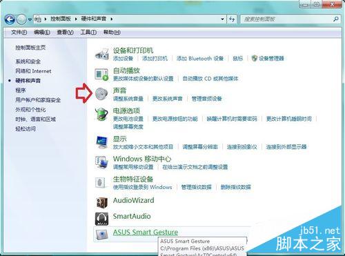 3、硬件和声音→声音。