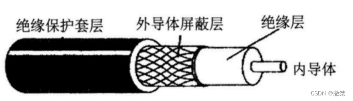 同轴电缆:网络早期使用,速率较慢,优点是耐用,传输距离长,抗干扰强。