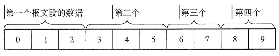 假设A和B之间建立了条TCP连接,A的发送缓存区中共有10B,序号从0开始标号,第一个报文包含第0~2个字节,则该TCP报文段的序号是0,第二个报文段的序号是3。