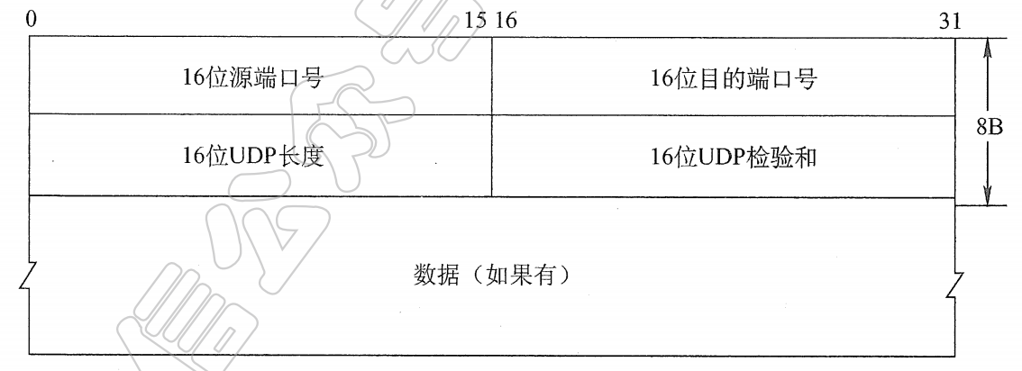 UDP 首部有8B,由4个字段组成,每个字段的长度都是2B,如上图所示。各字段意义如下:
