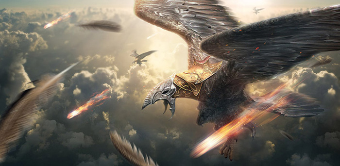 7、将素材图2放置画面中,图层命名为“鹰”。